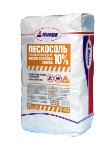 Противогололедная песко-соляная смесь на основе технической соли и песка пердназначена для боррьбы с гололедом и снежным накатом при температуре -10С. ПАрепятствует скольжению, обеспечивает безопасность на автомобильных дорогах, пешеходных дорожках и площадках, спусках и подъемах. Сухая смесь сохраняет рассыпчатость на морозе. При хранении не слеживается.