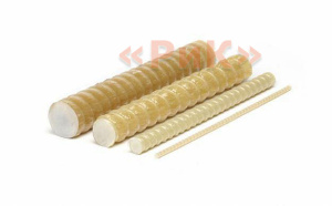 Арматура композитнаястеклопластиковая — это гибкий полимерный пруток со стекловолоконной анкеровочной навивкой, применяемый как заменитель традиционной стальной арматуры. Используется в промышленном, частном, дорожном и аэродромном строительстве для усиления участков, несущих высокую нагрузку, но не разогревающихся выше 200°C. Подходит для строительства береговых линий и морских сооружений. Преимущества Имеет высокую гибкость и прочность на разрыв при малом весе (в 8-9 раз легче стальных). Устойчива к коррозии и агрессивным средам: щелочным, кислотным, солевым. Не проводит электроток, не экранирует радиосигналы и электромагнитные волны. Не образует мостиков холода при низких температурах. При работе можно обойтись без сварки и металлорежущего оборудования. Имеет аналогичный бетону коэффициент расширения. Особенности Не используется для армирования плавающих фундаментов. Модуль упругости в 4 раза ниже, чем у стали (учитывается в конструкциях, работающих на прогиб). Рекомендуется для армирования фундаментов домов до четырех этажей.