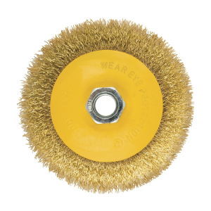 Латунная дисковая щётка для УШМ – одна из основных рабочих насадок для болгарки. Данный вид оснастки предназначен для эффективной зачистки от ржавчины, шлифовки и удаления заусенцев с различных поверхностей. Благодаря тому, что латунная проволока отличается меньшей жёсткостью по сравнению с обычной стальной, щётка не повреждает поверхность в процессе работы, что позволяет использовать её для обработки дерева, пластика, алюминия и меди.