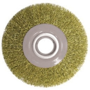 Латунная дисковая щётка для УШМ – одна из основных рабочих насадок для болгарки. Данный вид оснастки предназначен для эффективной зачистки от ржавчины, шлифовки и удаления заусенцев с различных поверхностей. Благодаря тому, что латунная проволока отличается меньшей жёсткостью по сравнению с обычной стальной, щётка не повреждает поверхность в процессе работы, что позволяет использовать её для обработки дерева, пластика, алюминия и меди.