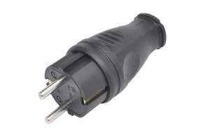 Вилка штепсельная ПРОГРЕСС прямая с/з каучуковая черная (20/200)