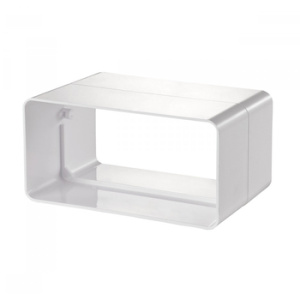 Соединитель применяется в системах вытяжной и приточной вентиляции для прямого соединения плоских каналов соответствующего сечения. Материал - пластик белого цвета.